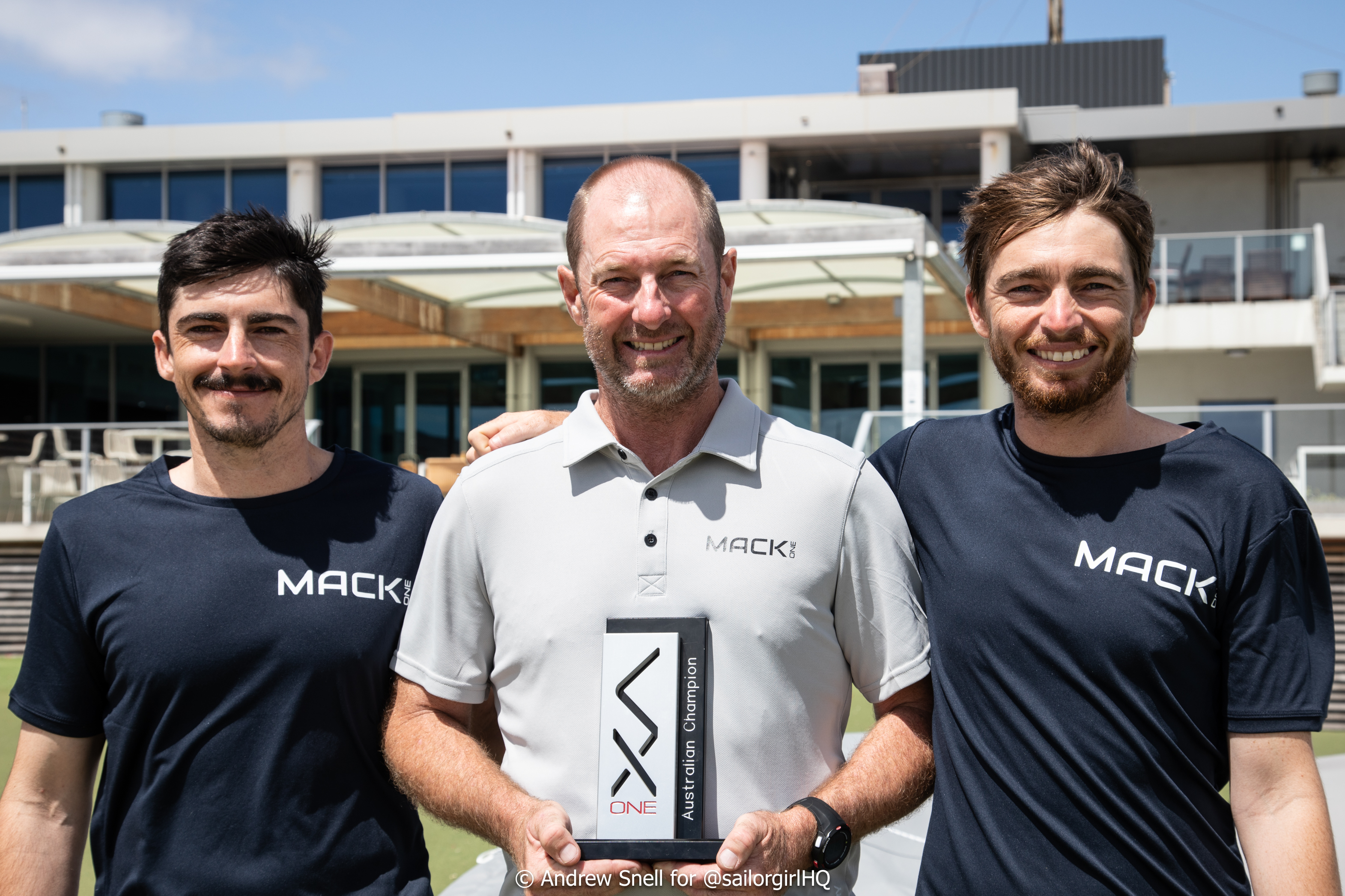 The formidable AUS332 Mack One crew of Ben Franklin, Alan Moffat and Josh Franklin have claimed a sixth straight national title at Royal Brighton Yacht Club. They clinched the win by four points over AUS330 Pipeline Drillers, skippered by Brett Whitbread, after racing was abandoned on the final day due to high winds with gusts over 30 knots.
